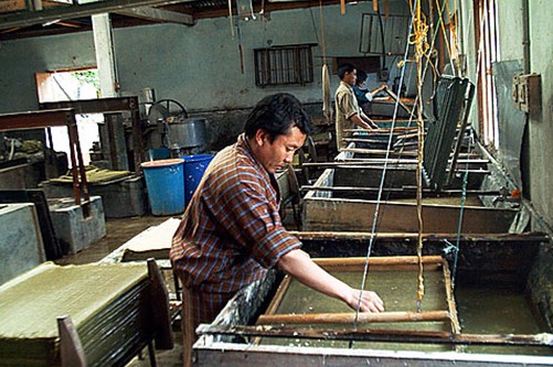 - Handmade Paper Factory The Jungshi handmade paper factory uses traditional methods to produce the authentic Bhutanese paper known as Deh-sho. It is located approximately 1 km from Thimphu City. The factory uses the bark of two tree species, the Daphne tree and Dhekap tree in the manufacture of traditional paper. Visitors can observe the entire process of producing handmade paper using ancient traditional methods that have been practiced for generations. You can even try your hand at this ancient craft and make some paper of your very own as a souvenir. Deh-sho paper was originally used by monasteries for woodblock and manuscript books and also for writing prayer books.